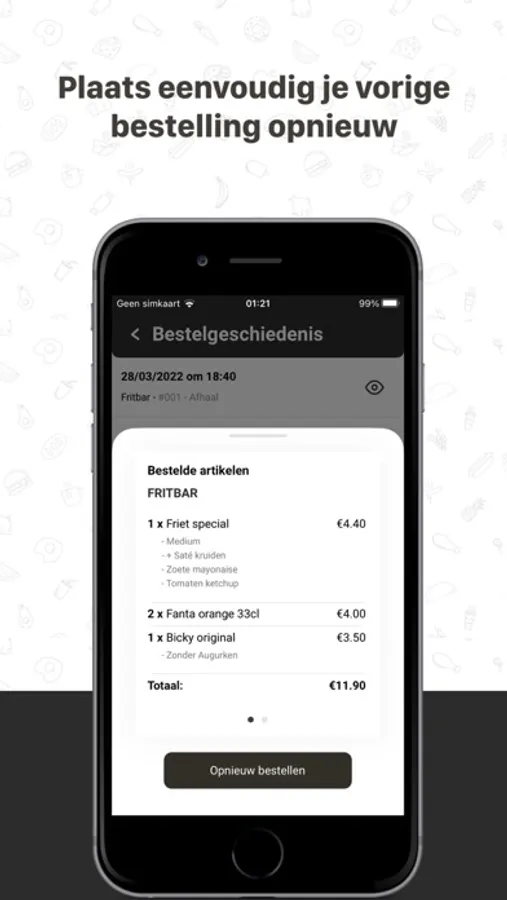Via de favorieten functie of je bestelgeschiedenis ben je slechts enkele vingerdrukken verwijderd van een nieuwe bestelling. Echt handig!