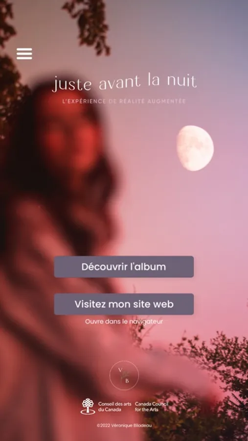 Reveal the secrets of the album 'Just before the night' with the Véronique Bilodeau application! See your physical copy of the 'Just Before Dark' album come to life through an augmented reality experience. Use the application to leaf through the album booklet, and discover a host of exclusive content: