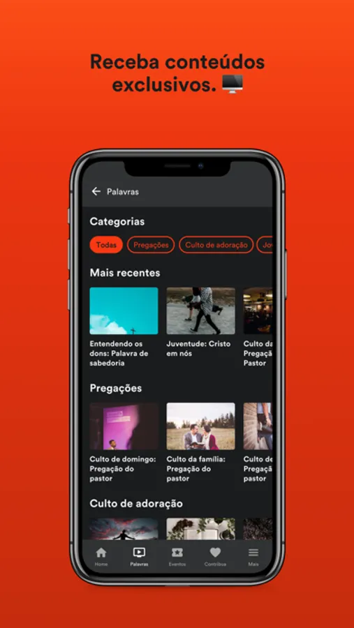 - Siga a agenda e fique por dentro de tudo que acontece na igreja, inscreva-se em eventos e tenha seus ingressos sempre com você.