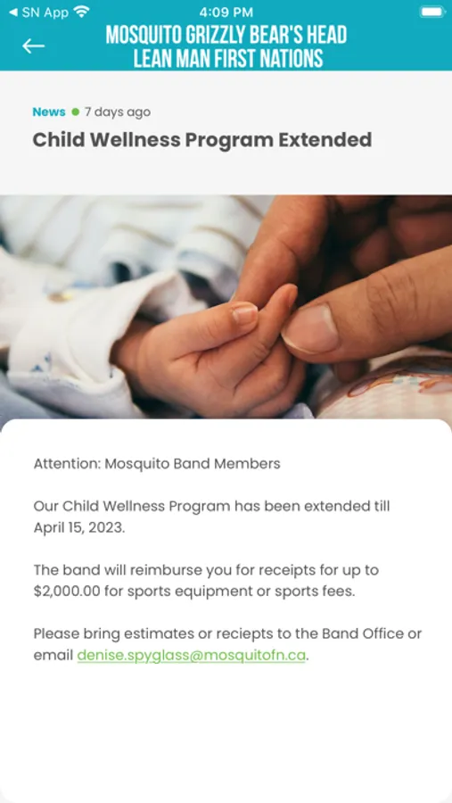 - View personalized feed supplied by the Band Office in a chronological order or by category: