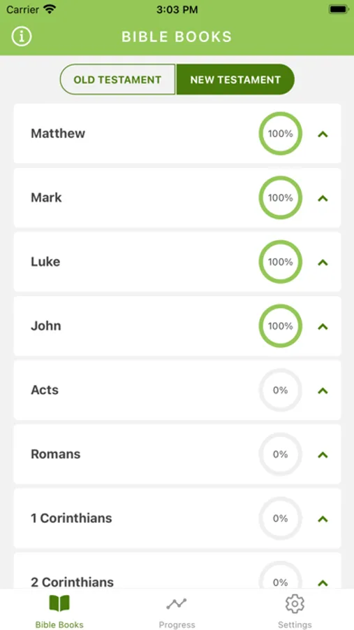 -Get percentage done for each book and the whole Bible