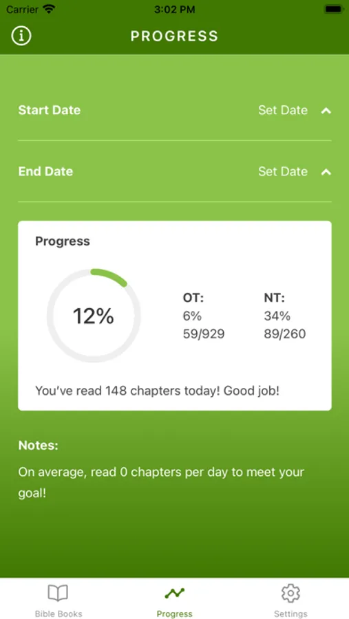 -Set goal date to finish the Whole Bible