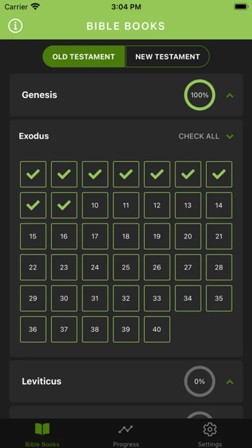 -Check off chapters you’ve completed or check off all chapters at once