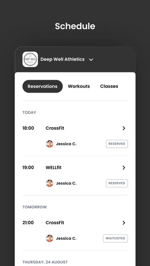 For members of Deep Well Athletics to reserve their place in a class, sign up for gym events, and general account management like updating headshots and credit card on file.