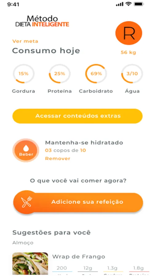 Conecte o app com o Apple saúde para comparar o consumo e gasto de calorias no dia.
