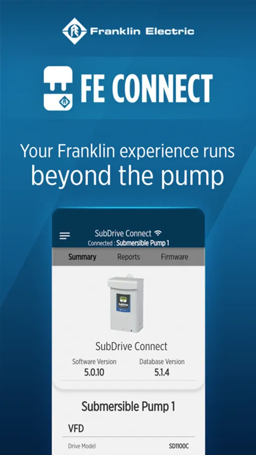 FE Connect enables onsite connectivity along with virtual collaboration and support, enhancing the way you service Franklin Electric products from your handheld device. Using intuitive setup features – as well as real-time logs and monitoring – FE Connect allows you to support any Franklin Electric product equipped with wireless connectivity. You can monitor and troubleshoot products, minimizing hands-on interaction with the drive or protection device.