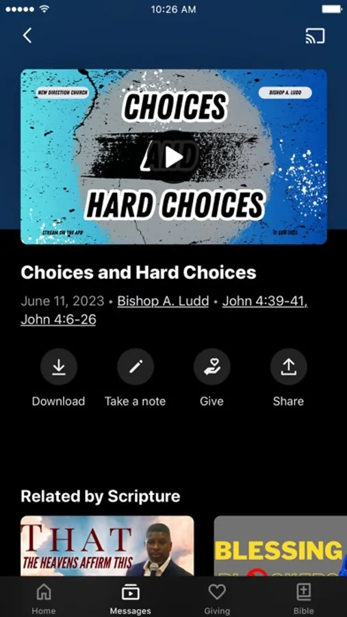 This app will help you stay connected with the day-to-day life of our church. With this app you can: watch past messages; stay up to date with push notifications; share your favorite messages on social media or email; and download messages for offline listening.