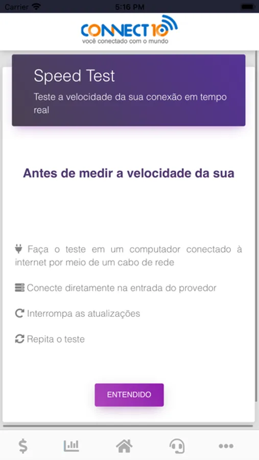 Com o aplicativo Connect10 Cliente você poderá consultar as suas faturas, assinar seu contrato digitalmente, verificar o seu consumo de banda e muito mais!