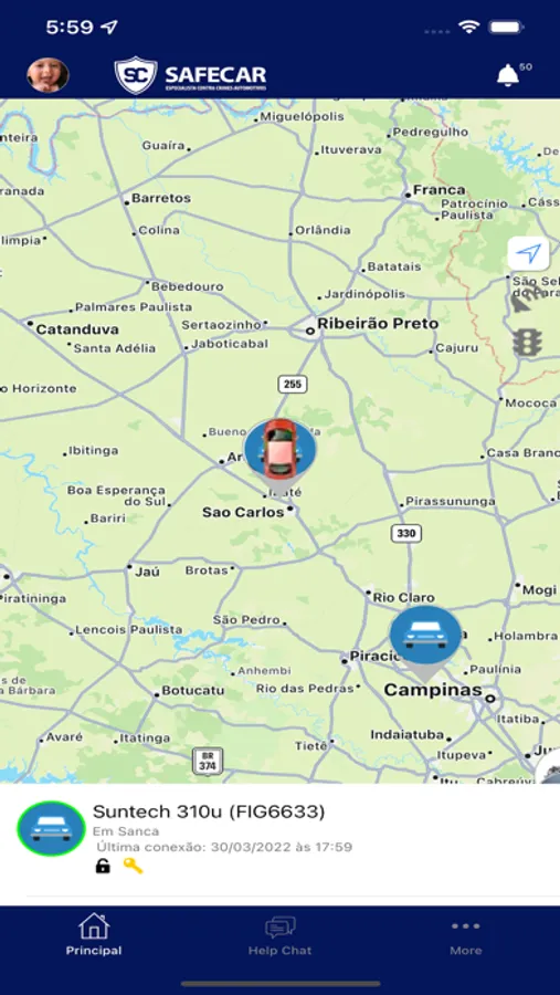 Aplicativo da Safecar para rastreamento dos seus veículos.