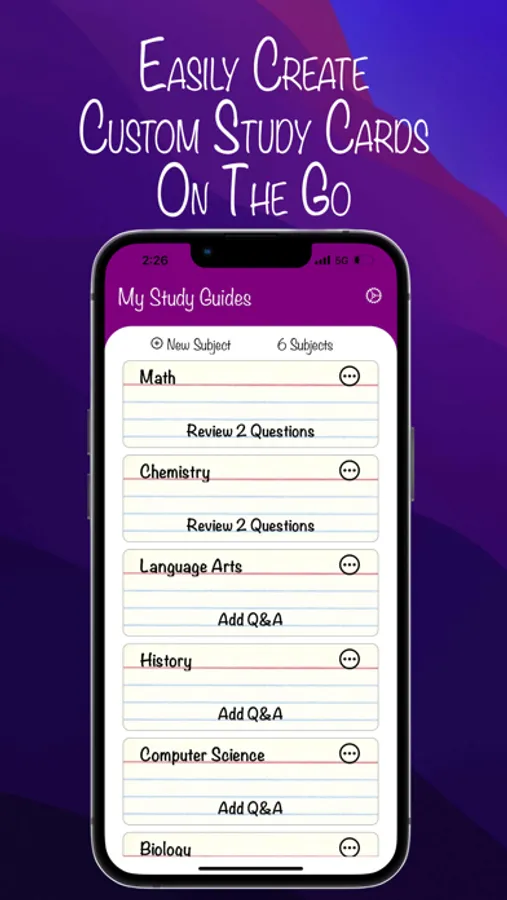 With our app, you can easily create custom flashcards for any subject, whether you're studying for a big test or just trying to learn a new language. Simply input the information you want to remember with the corresponding definition, or explanation to make your flashcards more interactive and engaging.