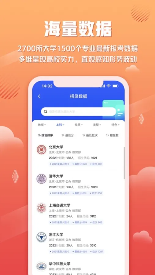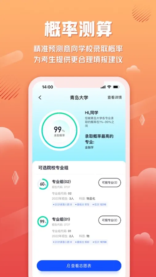 1、更科学的智能推荐:基于往年大数据科学测算,择优遴选,志愿表合理排序,用好高考每一分