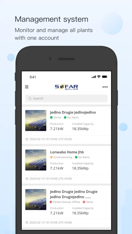 Go to SOFAR View APP to check running status of PV power plant at anytime and anywhere.