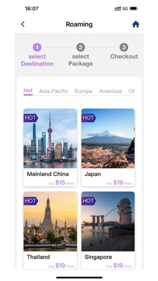 • Buy mobile data packages, roaming data passes, or other supplementary services.