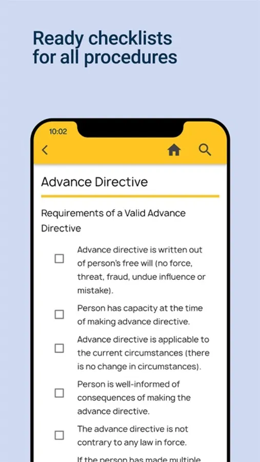 CHECKLISTS AND COMPLIANCE: Refer to checklists to monitor whether all requirements are being complied for every treatment procedure.