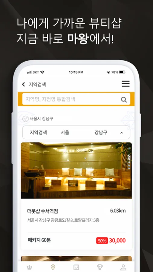 내 주변에 있는 뷰티, 마사지, 에스테틱 매장을 찾아주는 앱 마왕샵입니다!