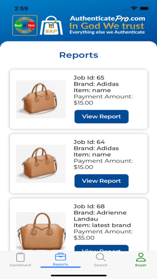 Our patent pending process brings buyers, sellers, and experts together when making a brand name purchase. Our Mobile App helps minimize the chance of buying or selling a counterfeit item.