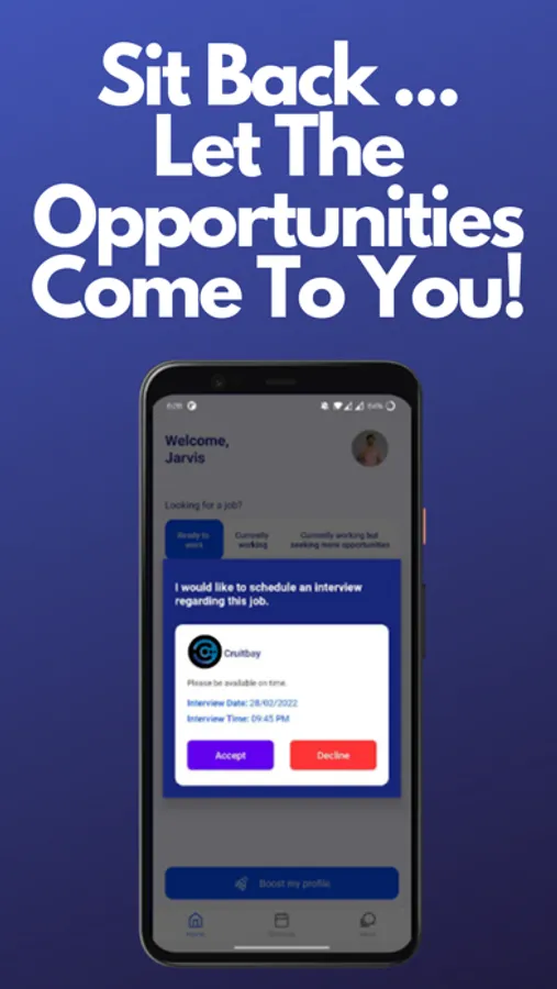 On Cruitbay, Companies reach out to you through our integrated messaging, and custom communication functionality, which includes SMS notifications, text messaging, and video calls, all through the Cruitbay platform!