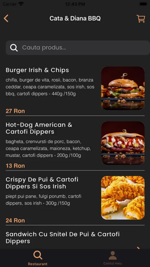 Utilizând aplicația Irish Pub, bucatele delicioase ajung mai repede la tine și întreg procesul este atât de simplu! Selectează din meniu preparatele dorite, adaugă în coș, alege metoda de livrare/plată și trimite comanda - nimic mai ușor! Descarcă acum app Irish Pub pentru a transmite întreaga comandă online, într-un mod modern, direct, rapid și eficient!