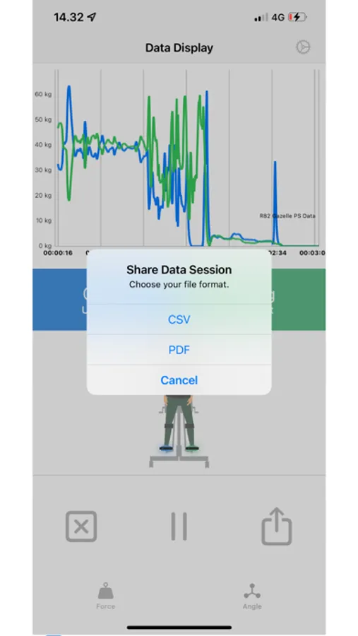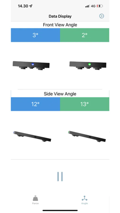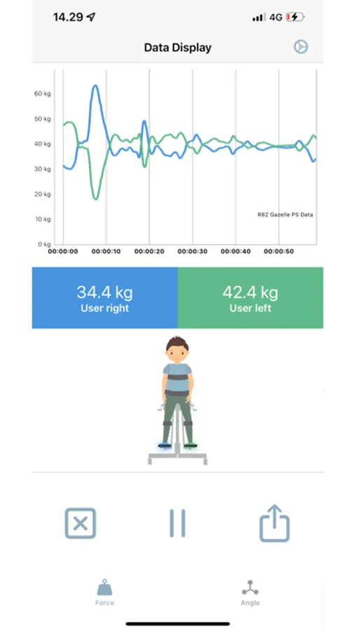 The Pondus® measures the forces going down the Pondus® plate and samples multiple times each second to detect small changes in weight bearing. The data is rendered as a chart allowing the user to see the changes over time. The angle