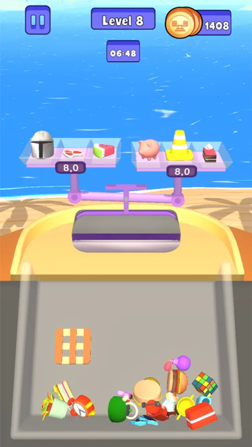 Guess how much each object might weigh and balance them! The quicker you put items on the scale, the more combo points you can get!