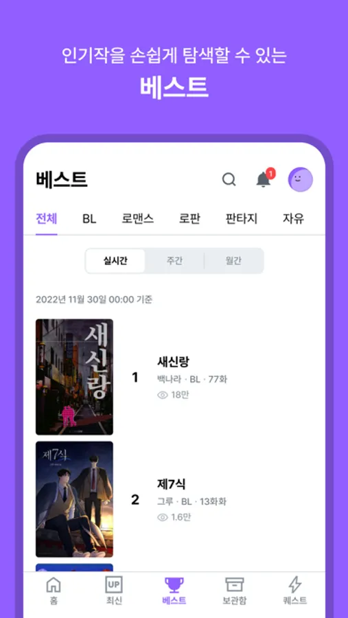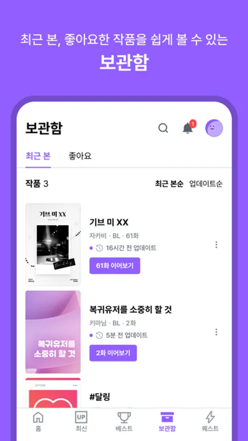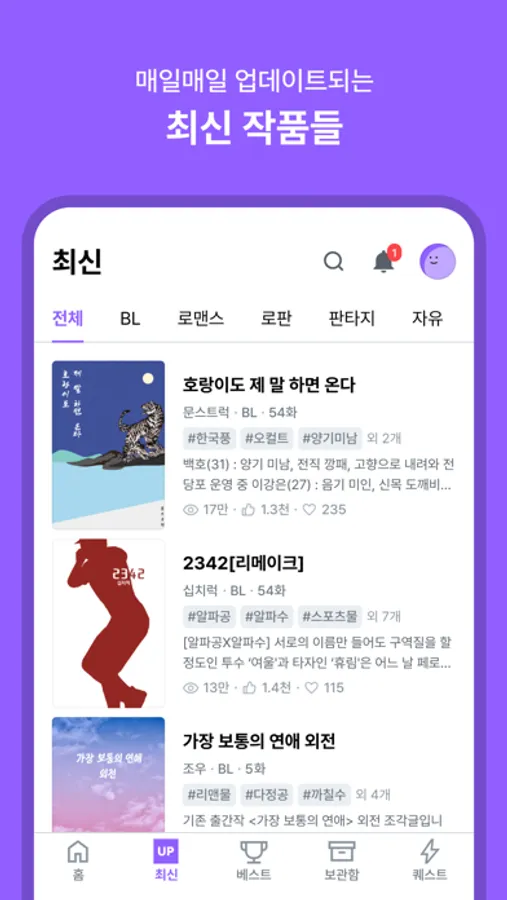 - 업데이트되는 작품들을 쉽게 찾을 수 있어요.