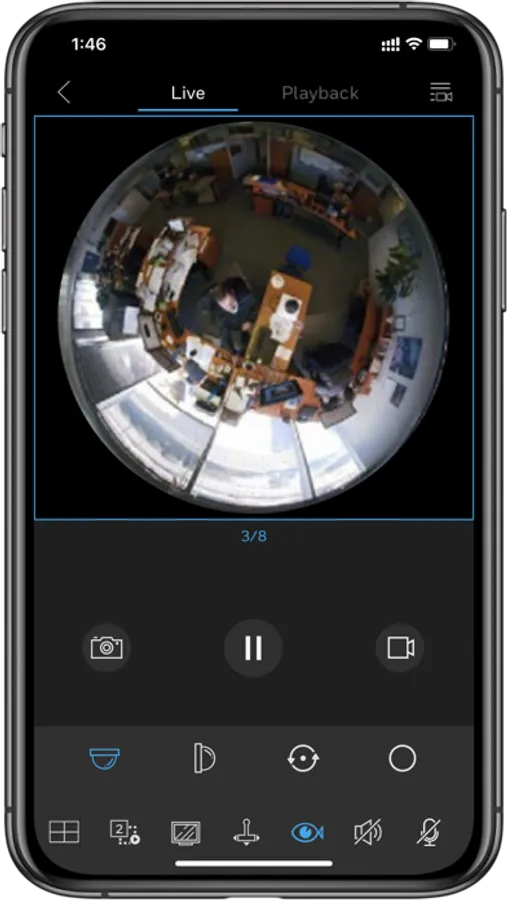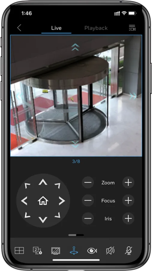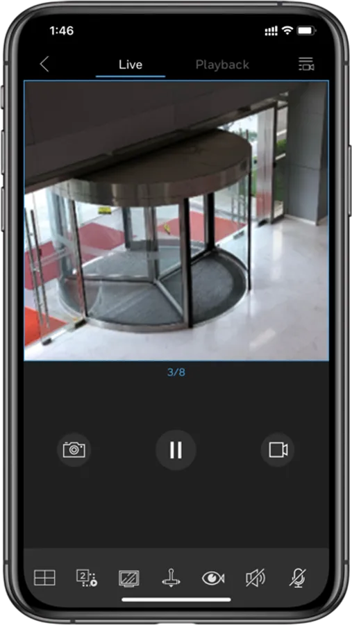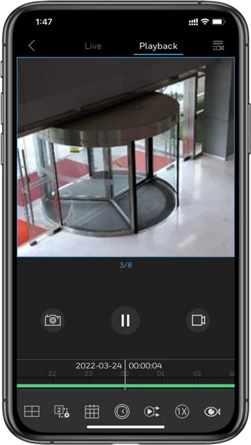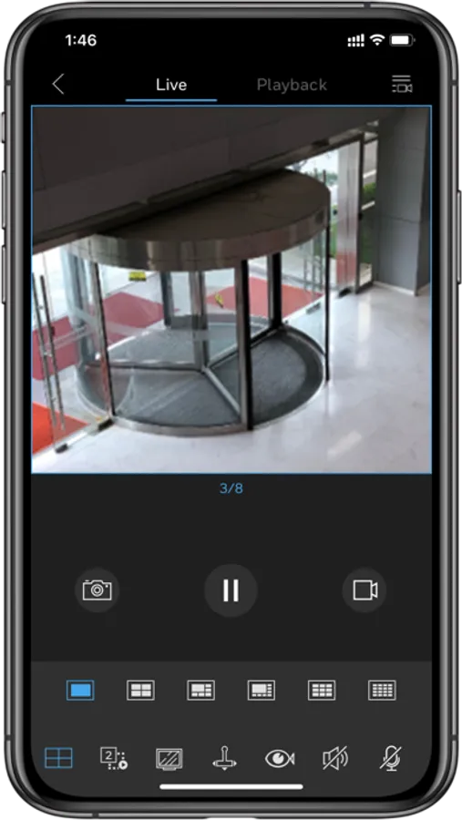 The Honeywell Smart Viewer (HSV) App is a tool for customers to manage 35 series NVR and the cameras connected to the NVR from mobile devices including iPad®, iPod®, and iPhone®. Connection is ensured through LAN/IP and also global P2P service. The communication between HSV and NVR is encrypted. With HSV, users can monitor live view, playback video recording, change live view layouts, conduct fisheye camera de-warping and PTZ control.