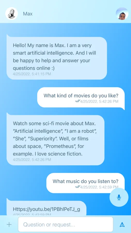 Smart AI is an app which features a text and audio chat with a strong artificial intelligence named Max. It will become your friend and assistant.