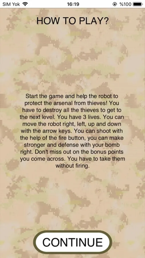 Start the game and protect the arsenal from foreign soldiers. You have to destroy all the alien soldiers to move on to the next level. You have 3 lives. You can move the robot right, left, up and down with the arrow keys. You can shoot with the help of the fire button, you can make a stronger defense with your bomb right. Don't miss out on the bonus points you come across. You have to take them without firing.