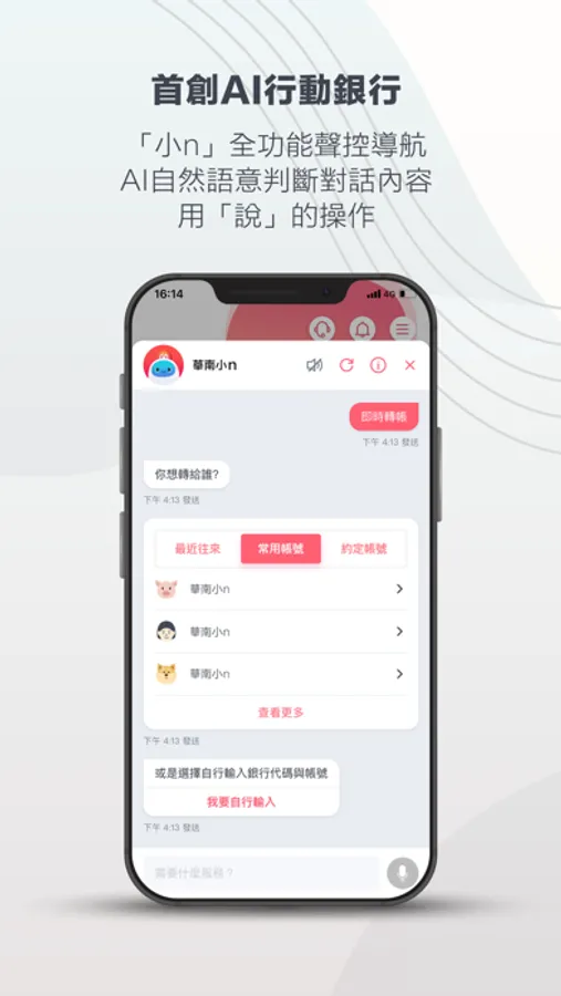 ※轉帳服務:臺幣即時/預約轉帳(包括約定/非約定)、預約轉帳查詢/取消、臺幣常用轉入帳號查詢/新增/修改、交易安控機制變更等。