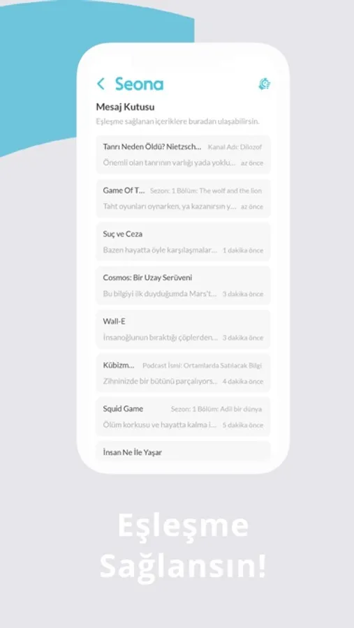 Seona yeni nesil bir mesajlaşma uygulamasıdır. Film, Dzi, Podcast, Youtube, Kitap ve Belgesel bu kategorilerin içerikleri hakkında aynı içeriği okumuş, dinlemiş ve izlemiş kişiyle birebir mesajlaşma imkanı sağlar. Eşleşen kişiler karşı taraf hakkında hiçbir bilgiye sahip olamaz. Eşleşme sağlandığında tek bildikleri aynı içerik hakkında sohbet etmek istemeleridir.