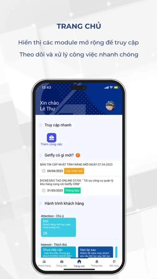 Phiên bản Getfly G Version với chiến lược Mobile First không chỉ kế thừa những ưu điểm nổi trội từ các phiên bản trước, mà còn cải tiến dựa trên xu hướng CRM quốc tế, đáp ứng tối đa nhu cầu người dùng với trải nghiệm mượt mà trên Mobile mọi lúc - mọi nơi. G version mang đến những trải nghiệm hoàn toàn khác biệt với giao diện thân thiện, luồng vận hành khoa học, logic.