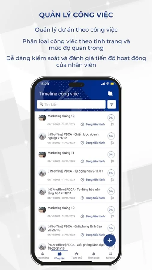 - Sắp xếp công việc theo thời gian thực hiện, cảnh báo công việc chậm tiến độ