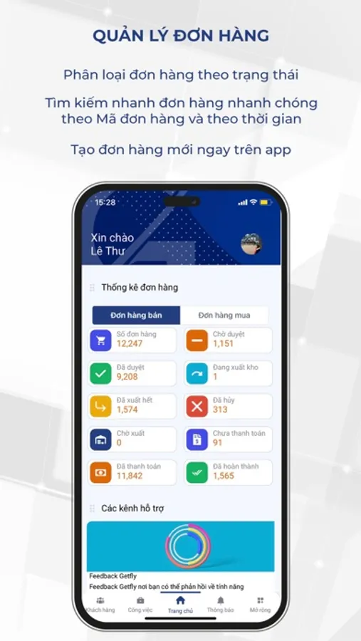 - Thao tác duyệt, huỷ, chỉnh sửa đơn hàng ngay trên app