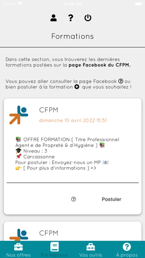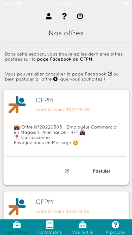 - Postuler aux offres d’emploi et de formation proposées par le CFPM
