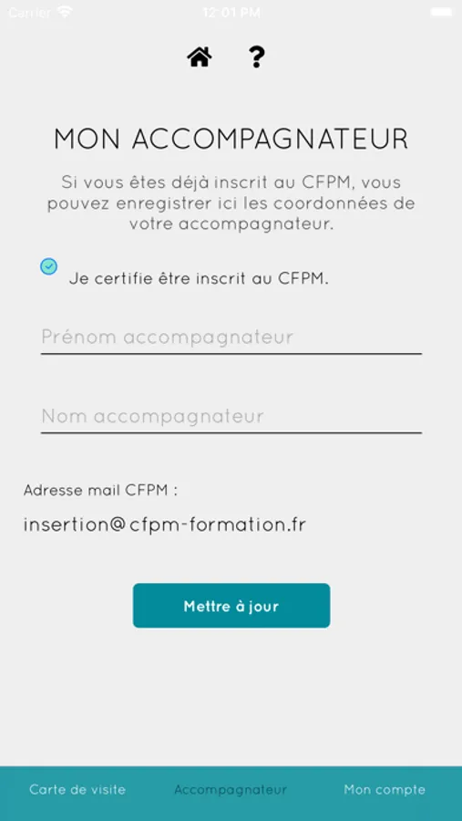 - Renseigner les coordonnées de votre accompagnateur afin que celui-ci soit informé des offres auxquelles vous postulez