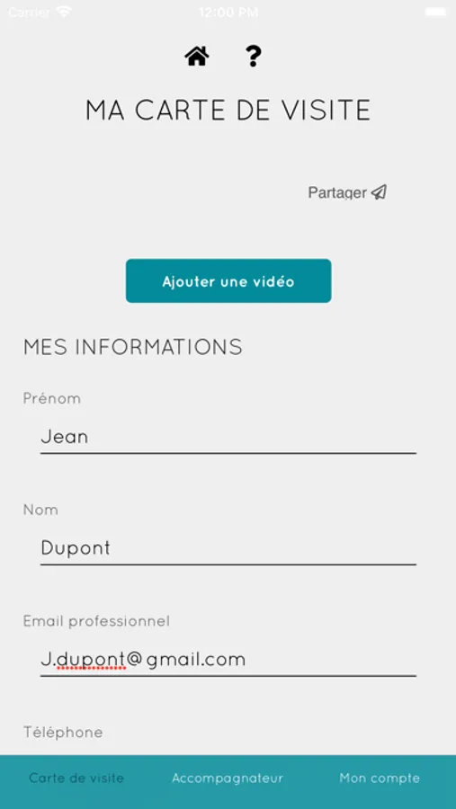 - Ajouter un CV vidéo et créer votre carte de visite personnalisée que vous pourrez ensuite partager à vos recruteurs