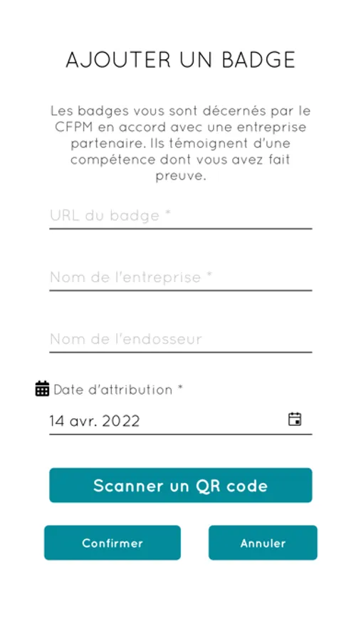 - Ajouter les badges que vous avez obtenus par l’intermédiaire du CFPM, témoignant des compétences dont vous avez su faire preuve
