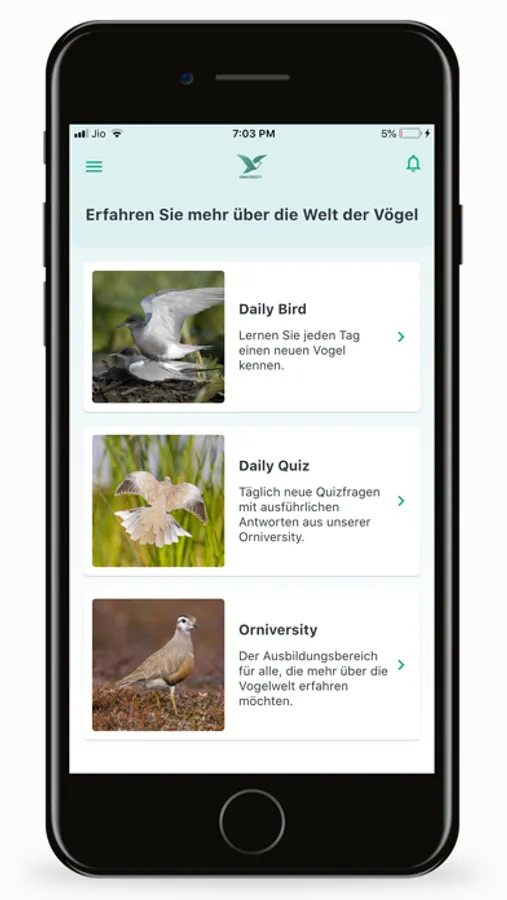 Wir möchten Ihnen mit dieser App die Möglichkeit bieten Ihr Wissen ganz nach Ihren Interessen in der Ornithologie zu erweitern.