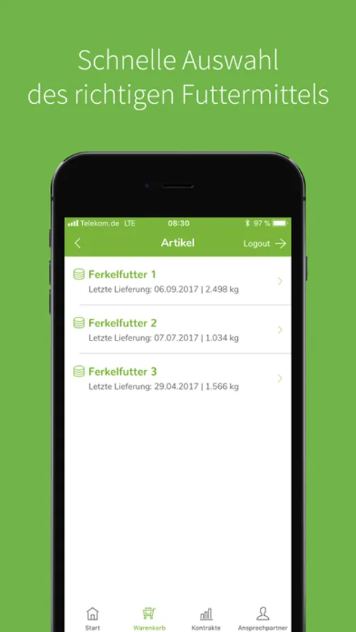 Mit unserer kostenlosen Bestell-App können Sie rund um die Uhr, von jedem Ort aus Futter bestellen (Internetzugang vorausgesetzt).