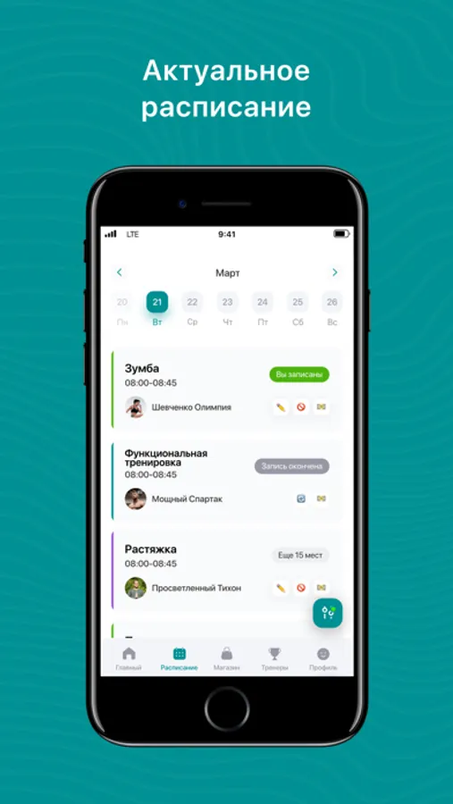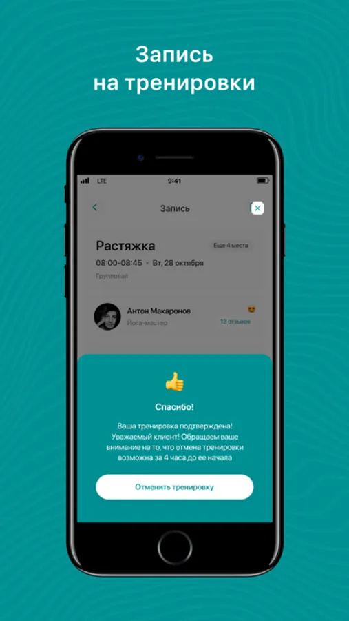 - Получение PUSH-уведомлений о предстоящей тренировке за 3 часа;