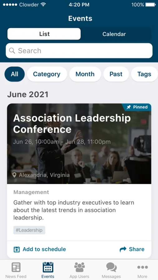 Nexus is the next level of event connectivity. The Nexus event platform is fully customized and branded to each individual organization. You choose the features your members need. Mobile is now where people connect (especially the Millennial members you are wanting to attract). It’s time for you community to adapt!Features include:• Members tab: Find a list of all members for easy communication.
