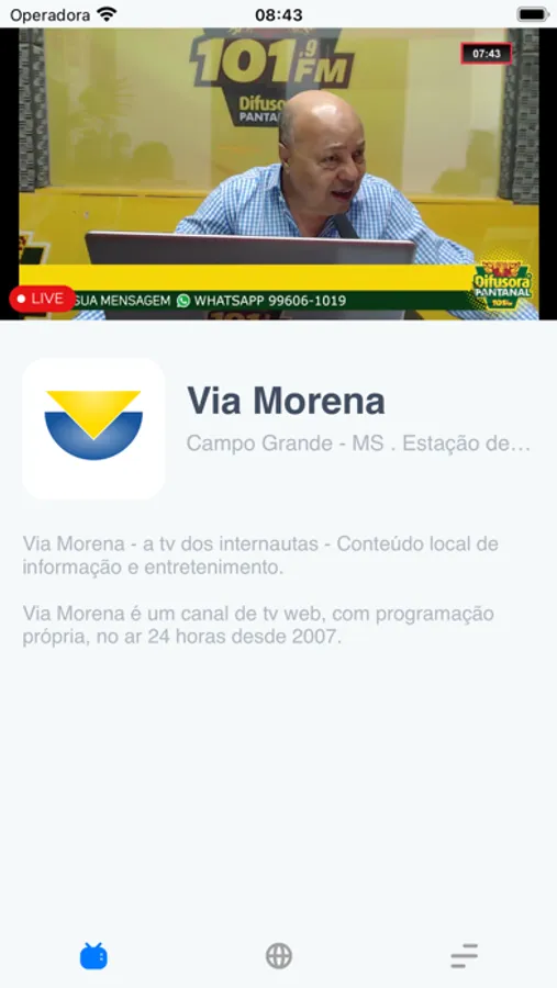 A tv dos internautas. Via Morena é um canal de tv web, com programação própria, no ar 24 horas desde 2007.