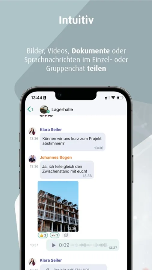 Tausch Dich in 1:1-Chats oder in Diskussionsgruppen aus und versende Textnachrichten, Dokumente oder Mediendateien - aber auch Sprachnachrichten und Umfragen sind möglich. Jede Kommunikation wird automatisch und durchgängig VERSCHLÜSSELT.