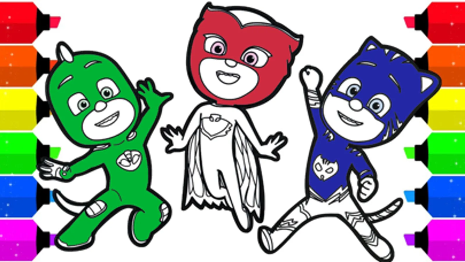 PJ coloring super heroes masks at night is an educational coloring book and one of the best coloring game for PyJa characters. This game is designed only for old people and adults men and women , they will learn to paint pictures correctly using the right colors. and will have so much fun time coloring Big CatBoys, Owlette's and Gekkos, and all the pyj super heroes mask characters in our application game which contains about one hundred coloring pages of Cat Boy, Ow lette, pija and Geko.