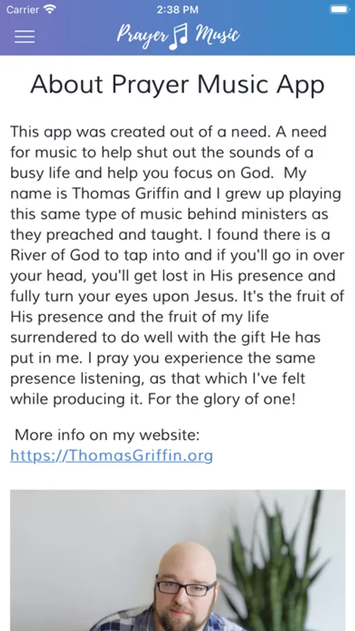 Prayer Music by Thomas Griffin. You'll love listening to hours of music for prayer, bible study, and time with God. You'll love the full music library and 24/7 Healing Rest Radio, music to help you enter deep healing sleep. Simply download and start streaming. You'll also find encouraging blog articles, audio devotionals, and more.
