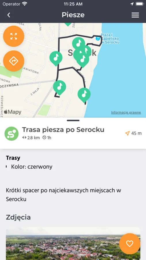 Aplikacja zawiera propozycję tras pieszych. Każda z nich zaznaczona została na mapie offline, a dzięki technologii GPS widzisz swoją dokładną pozycję podczas wycieczki. Na trasach zaznaczone są ciekawe obiekty i miejsca, które warto odwiedzić. Cenną propozycją jest także moduł audioprzewodnika, który pozwoli wysłuchać treści o najważniejszych obiektach na trasach.