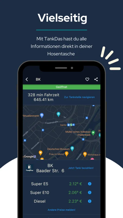 Now fill up cheaply and pay fuel prices from the pump with the TankApp. It works like Bertha!