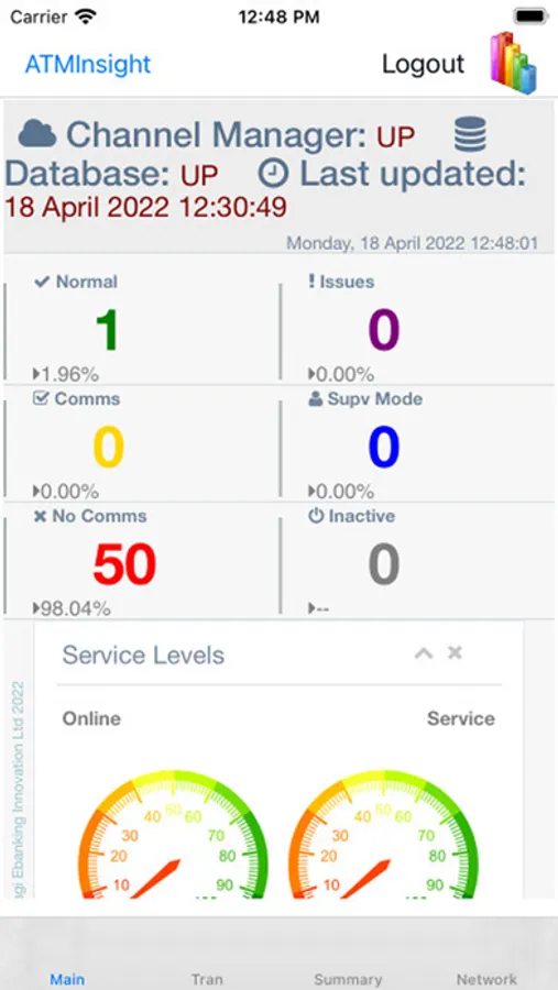 ATMInsight ATM Monitoring app is for monitoring ATM fleets and allows users to gain insight to ATM states. Use the app to gain insight into ATM activities, including information on the state of ATMs in the fleet.