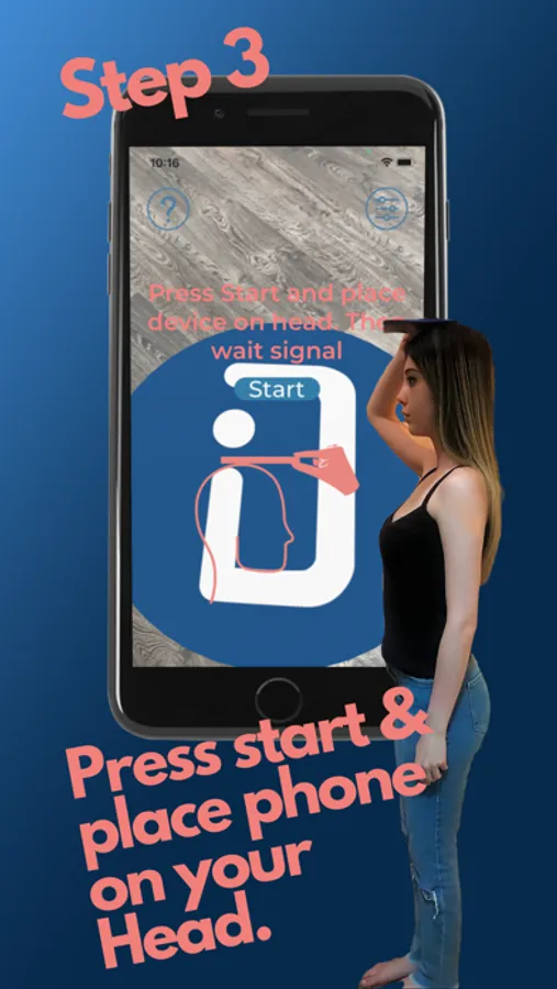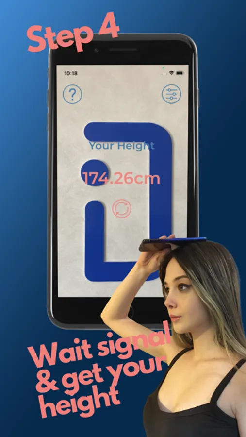 With this app, you can measure your own height with high precision without anyone's help. Just follow the instructions on the screen. Find out your height in 4 steps.