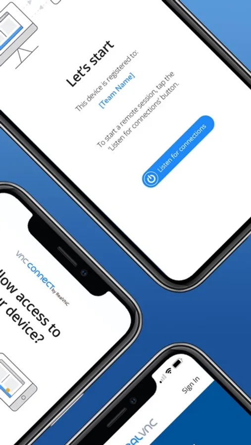 • DEVICE ACCESS lets IT teams pre-license a managed mobile device against their RealVNC Connect account. A session can be started without a session code, but the device holder still needs to authenticate the session. This option is available only on RealVNC Connect Enterprise Device Access plans.